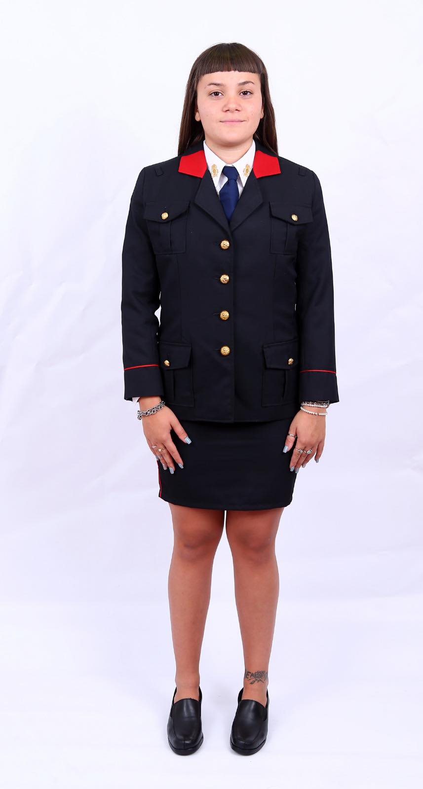 - Pantalón / pollera con vivos rojos